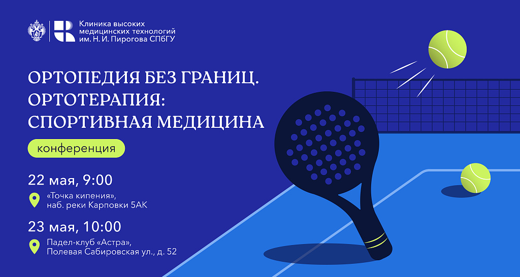 22–23 мая в Санкт-Петербурге состоится научно-практическая конференция «Ортопедия без границ. Ортотерапия: Спортивная медицина», посвящённая актуальным вопросам спортивной медицины, травматологии и ортопедии. Организаторами мероприятия выступают Клиника высоких медицинских технологий им. Н.И. Пирогова СПбГУ и спортивный клуб «Astra Padel».