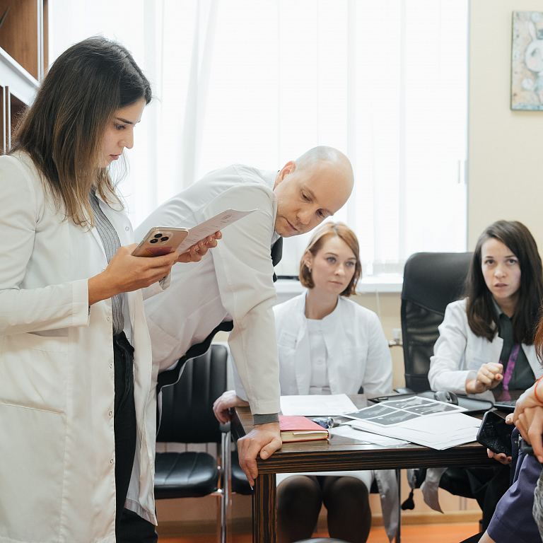 - Для обеспечения высокого уровня безопасности пациента в клинике регулярно проводятся междисциплинарные консилиумы с участием врачей разных специальностей.