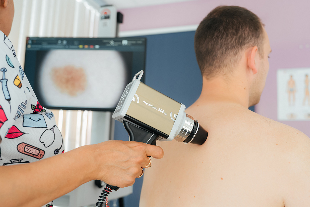 - Активное использование уже в течение 3 лет аппарата FotoFinder, позволяет выявлять патологические образования на коже пациента, фотографировать подозрительные участки на теле и сохранять для последующего сравнения и анализа происходящих изменений. Благодаря созданному банку таких фото, врач всегда может увидеть злокачественную динамику и вовремя назначить радикальное лечение.