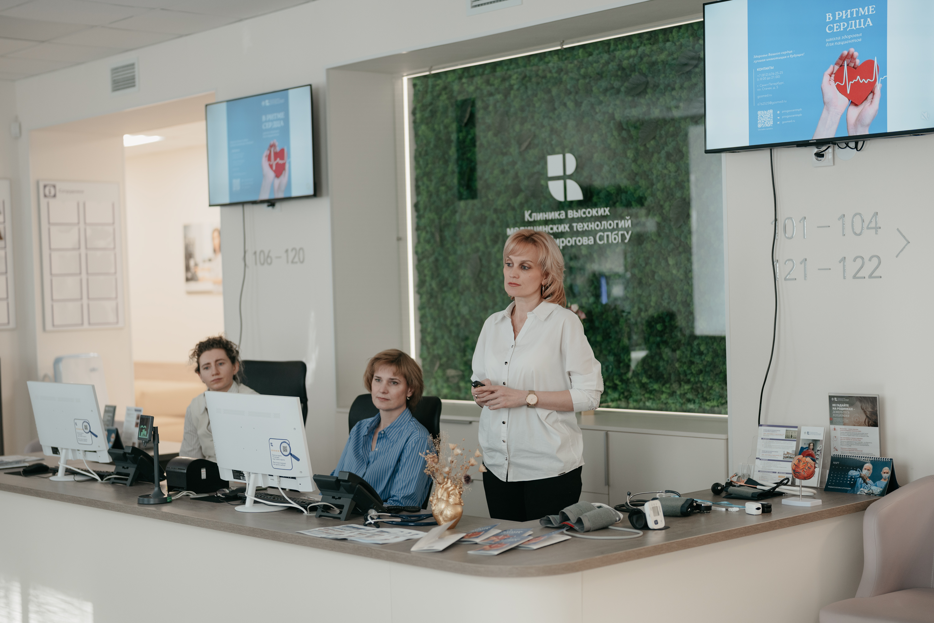 Школа здоровья проходит в формате очных встреч пациентов с врачами-специалистами, в частности, врачами-кардиологами и другими смежными специалистами Клиники. Занятия проводятся с периодичностью 1 раз в 3 месяца, в выходные дни по адресу: площадь Стачек д. 5 в поликлиническом отделении Клиники высоких медицинских технологий им. Н.И. Пирогова.