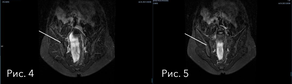 На снимках ниже (рис. 4-5), через полгода лечения генно-инженерными биологическими препаратами, мы видим абсолютную МРТ-ремиссию.